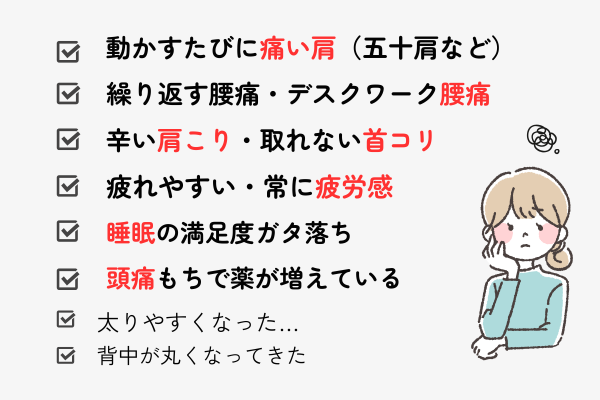 体が大きく変わる40代以降の女性のトータルケアをマルっとサポートする鍼灸スタジオとして、体の不調や痛みのある「あなた」と向き合います。