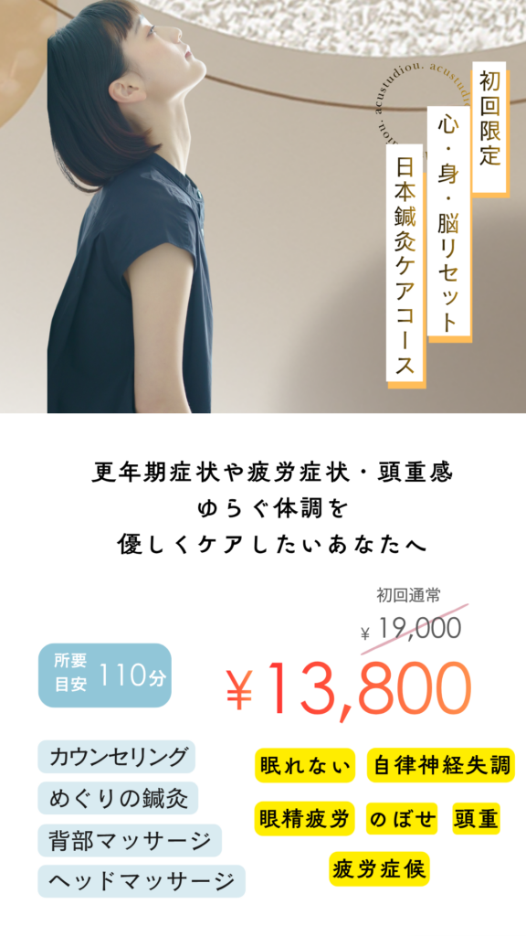 - 施術: 痛みの少ないメグリの鍼と背中・頭の丁寧なマッサージで仕上げ