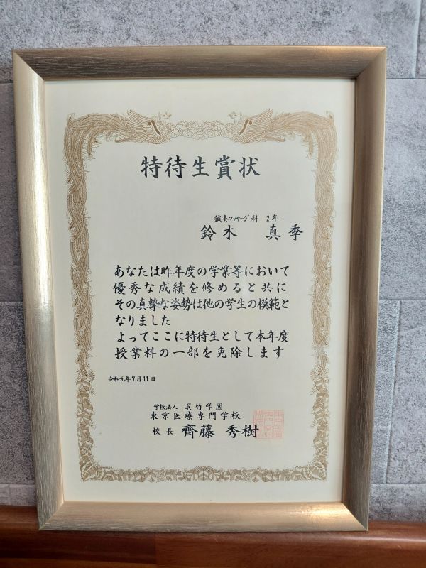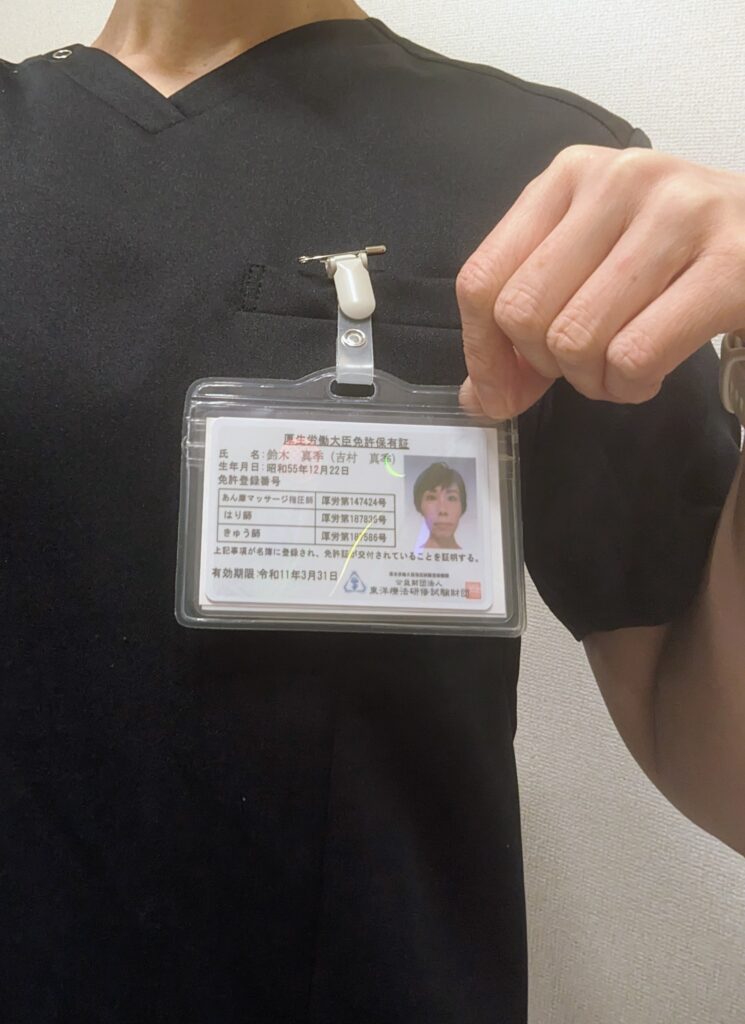 「整体師」として高い評価を受け、入社わずか2年で2店舗の責任者を兼任するまでに成長。その後、11年間にわたる自宅サロン経営という実績を経て、より深い専門性でお客様に応えるため、厚生労働省管轄免許(国家資格)である鍼・灸・マッサージ師の3療の免許を取得した。