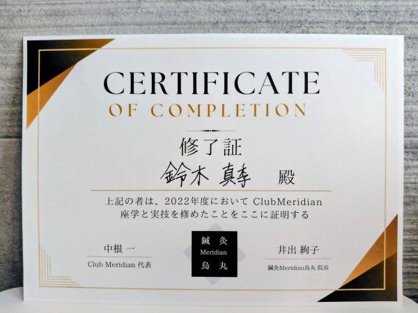 - 京都 鍼灸Meridian烏丸主宰 中根一先生/ 私塾 2022.Club Melidian修了