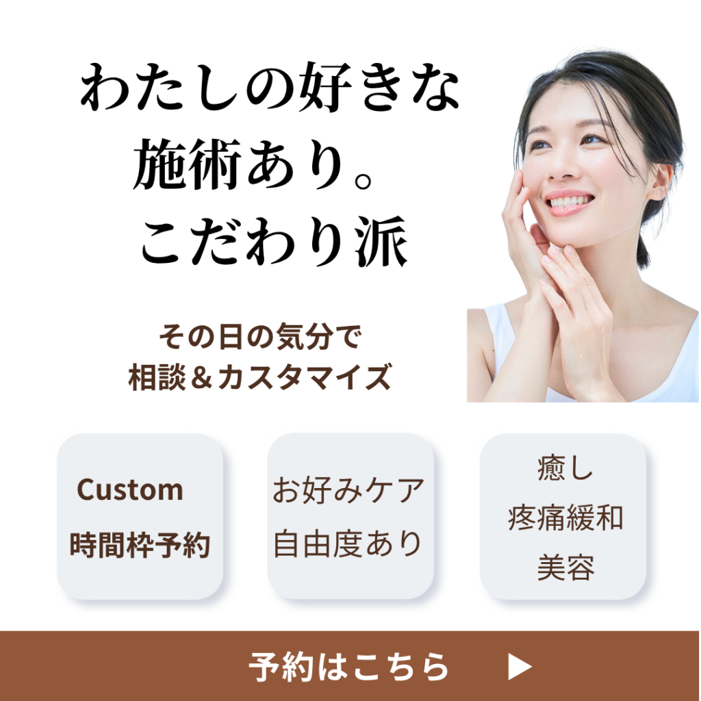 コースで迷ったら、一度にかけられる「お時間」を目安にお選びください。たくさんお悩みがあっても、歯医者さんのように少しずつケアをしていく形も、勿論できます!