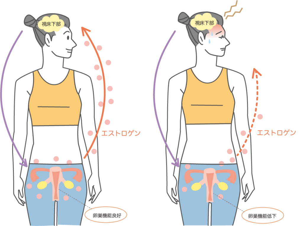 エストロゲンの減少により、脳の司令塔である「視床下部」がパニックを起こします。