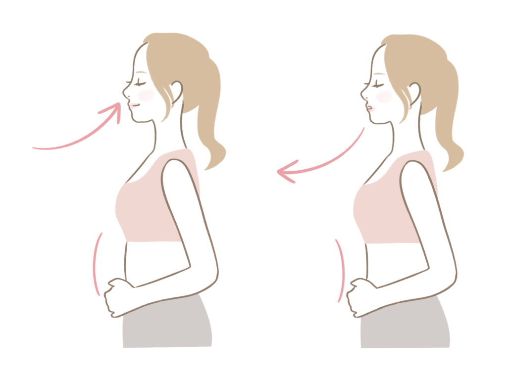 鼻から吸って、口から細く長く吐く。