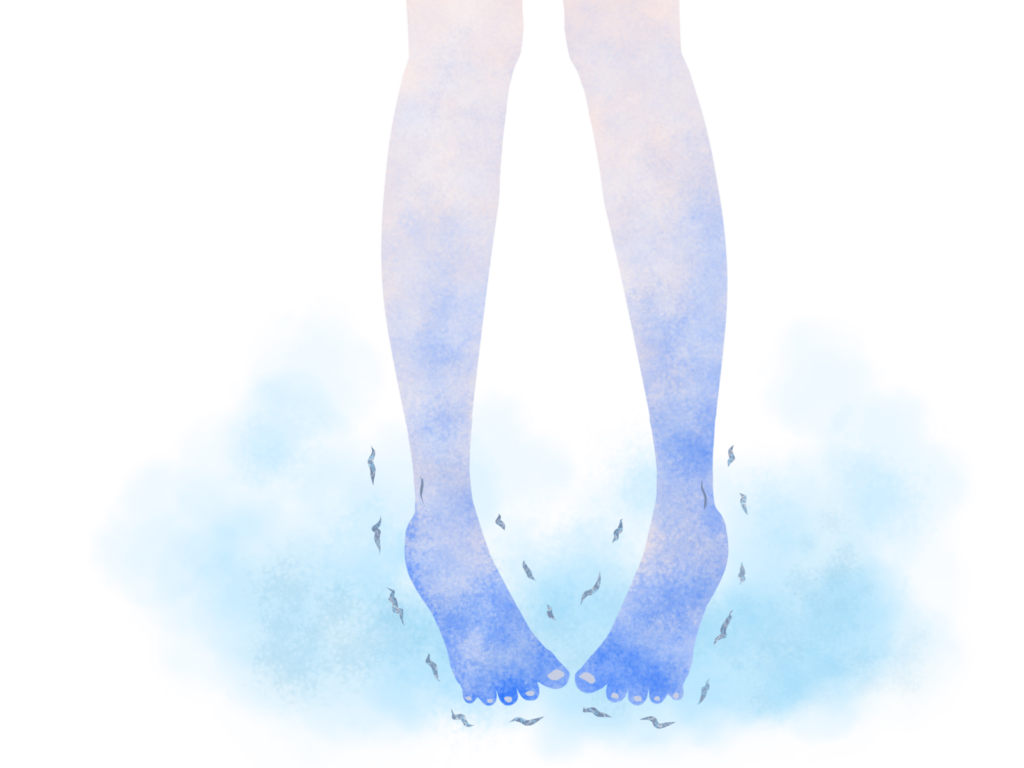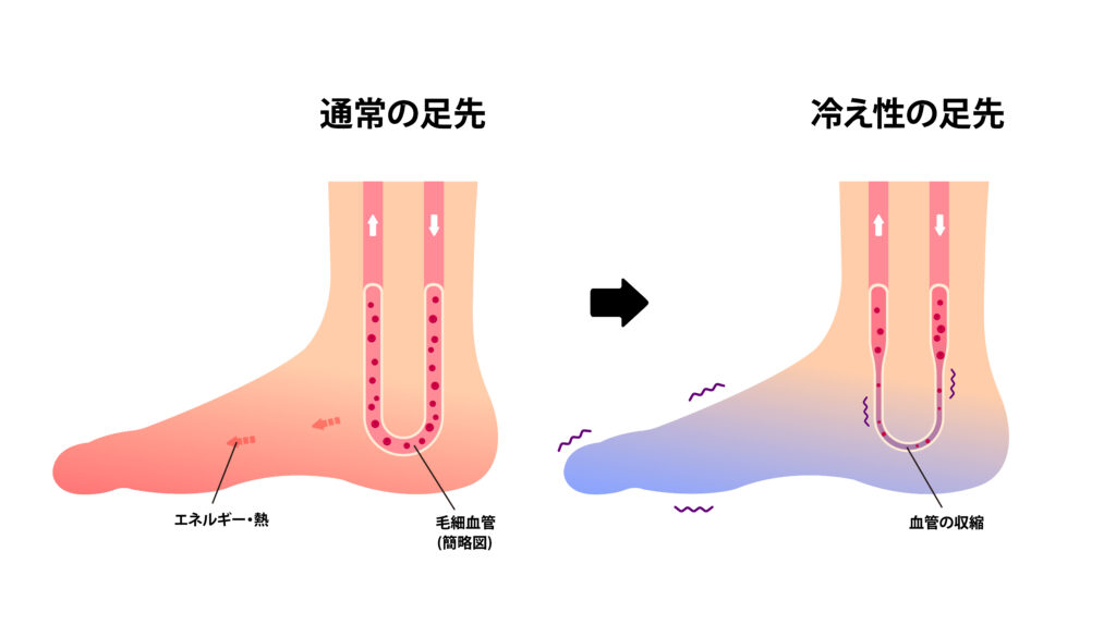 Comparison illustration of normal foot and cold foot ( sensitivity to cold, cold toes) / Japanese