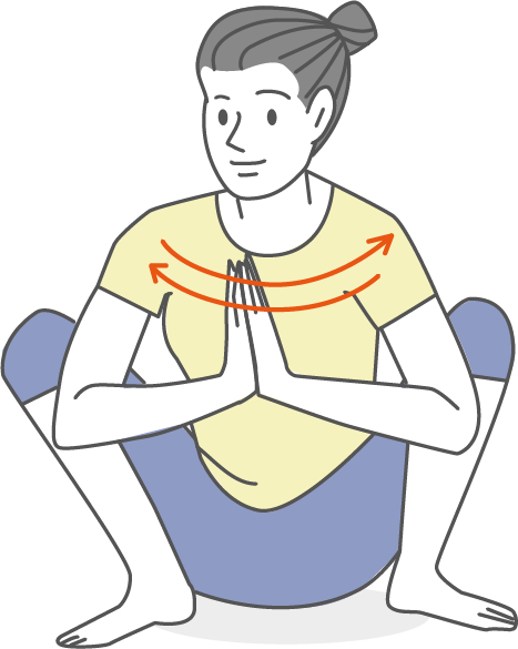 ①:深呼吸で横隔膜を動かし、内臓マッサージを行う