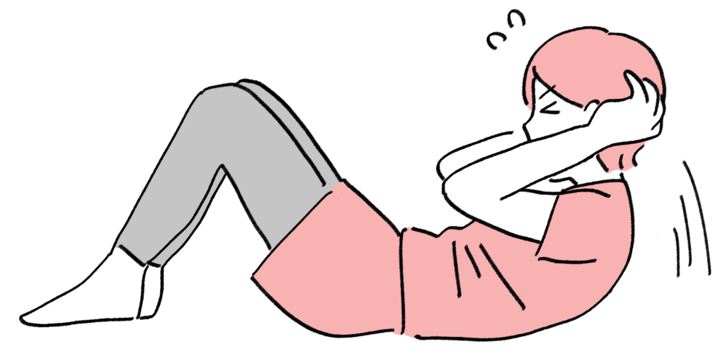そして、腰痛がある方ほど、高確率で「腰に負担がかかりやすい腹筋(シットアップ)」を自己流で頑張ってしまっているシーンがとても多いんです。