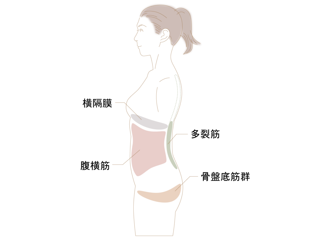 この「底」が緩んでしまうと、内臓を支えきれなくなり、下っ腹がポコッと突き出てしまいます。筋トレで無理やりお腹を凹ませようとする前に、まずはこの「ハンモック」をピンと張る意識を持つことが、スッキリしたウエストラインを作る近道です。