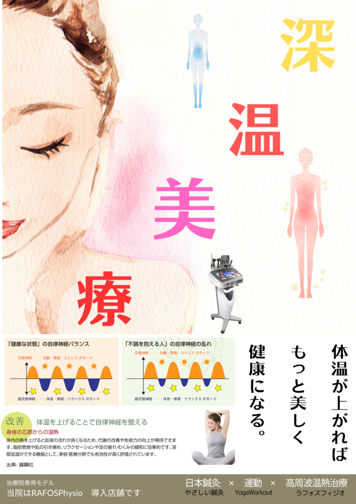 気の巡りを鍼灸で整え、代謝力を高周波療法で引き上げる。